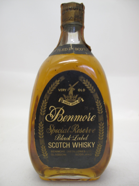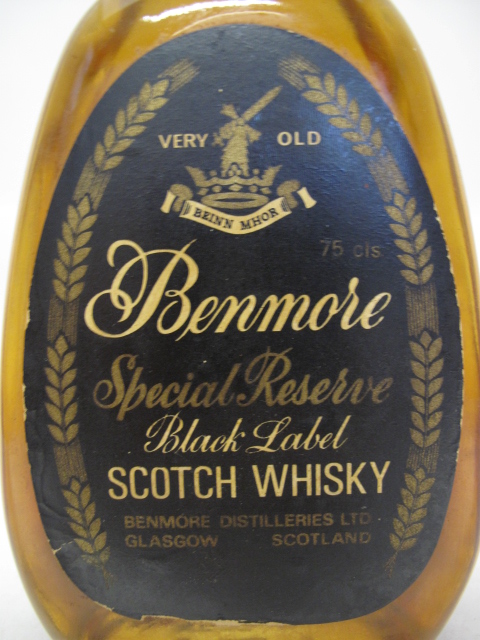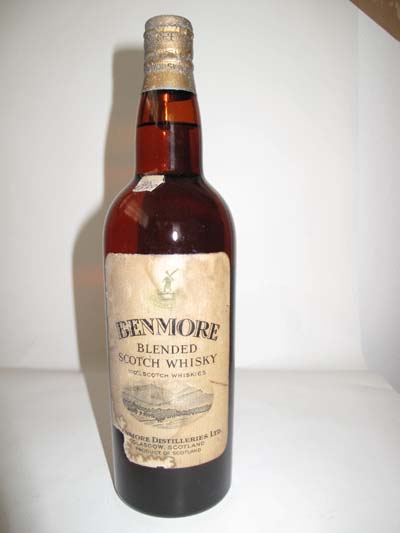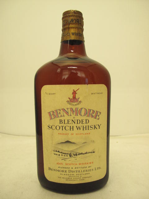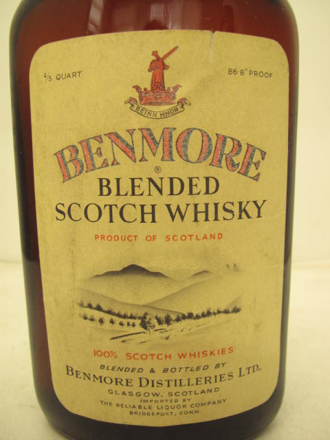 Dark glass - tall bottle - Landscape in cream label printed in black & red - Gold tin cap - Reliable liquor company import (USA)