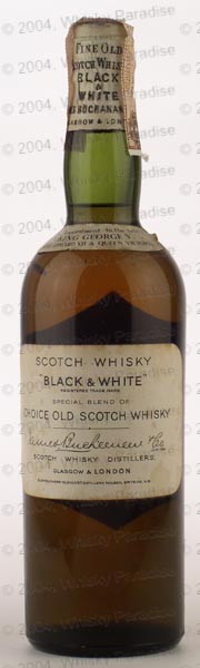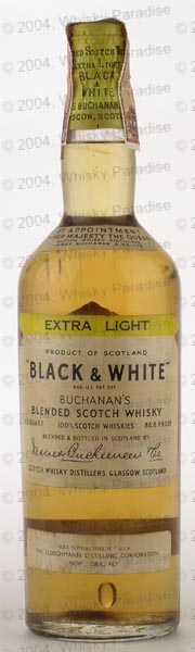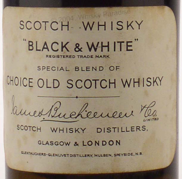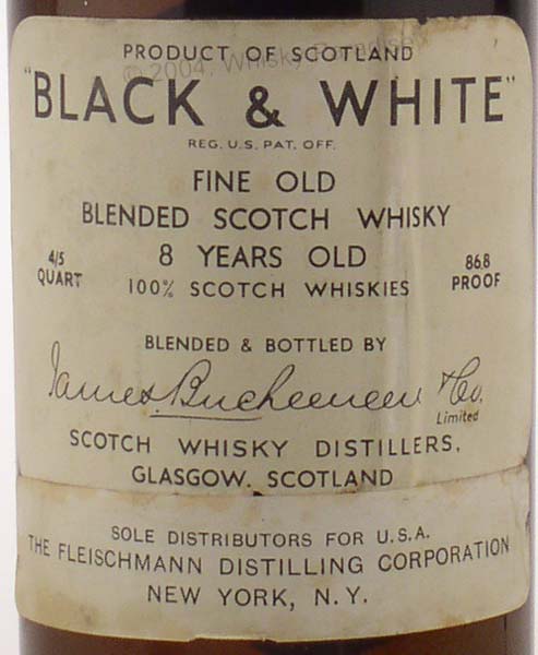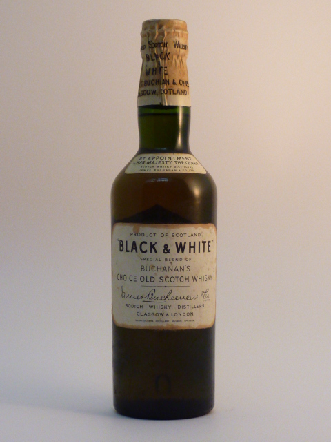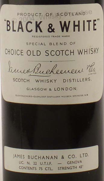 Dark glass - tall bottle - Black print in white label - Metal seal - Buchanan & Co. import (Italy) tin cap