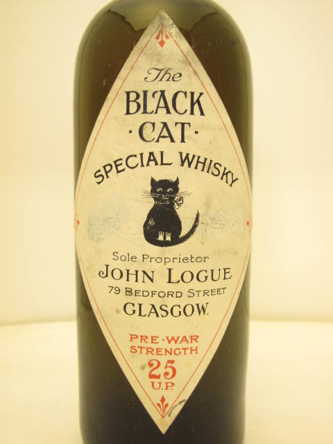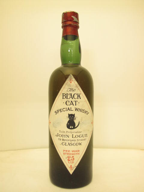 Green glass - Tall bottle - Cat in cream rhomboidal label - Cork drive - Dark capsule - Prewar strength 25 u.p.