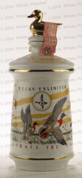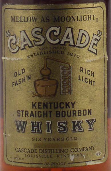 Clear glass - Tall bottle - Gold label printed in black & white - Pot still picture - Red seal with ribbon - Gold screw cap