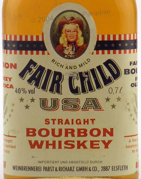 Clear glass - Square bottle with rounded corners - Portrait picture in cream label printed in black & red - American flag cap - For German import