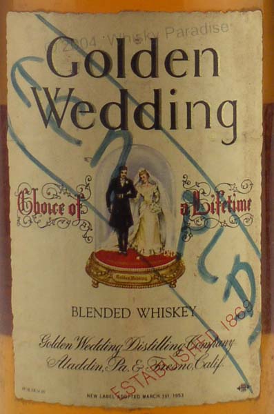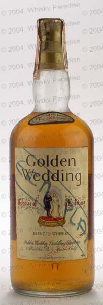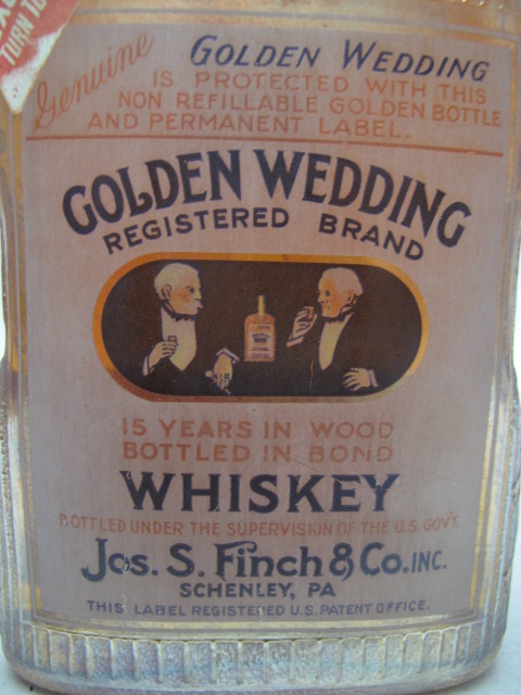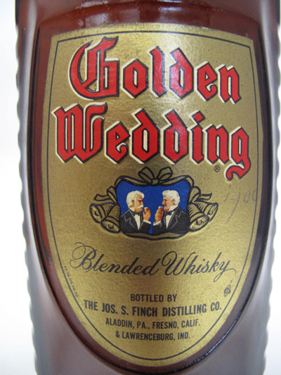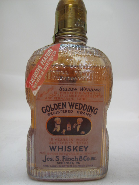 Clear glass - Bottle long necked - Wedding picture in cream label - Gold cap