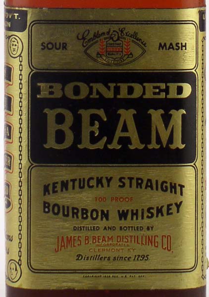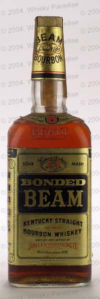 Bonded Beam - Clear glass - Squat bottle long necked - Gold & black label - Gold cap