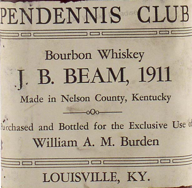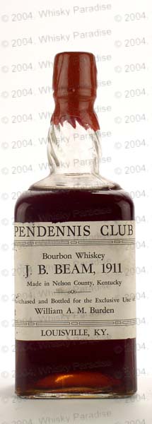 Pendennis Club - Square bottle with swirled neck - White label printed in red - Red cap
