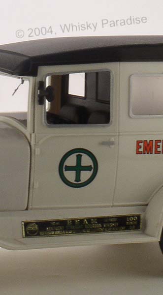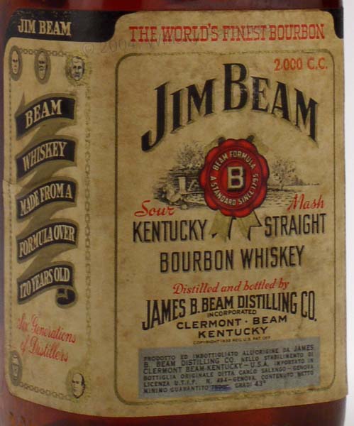 Clear glass - Square Magnum bottle with vertical groove lines embossed on the neck - Cream label printed in black & red - White cap - Salengo import (Italy)