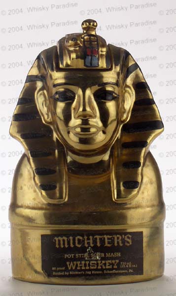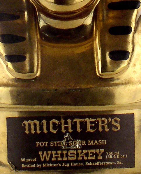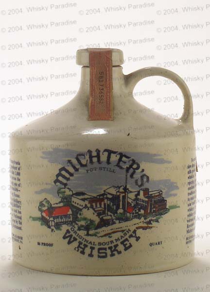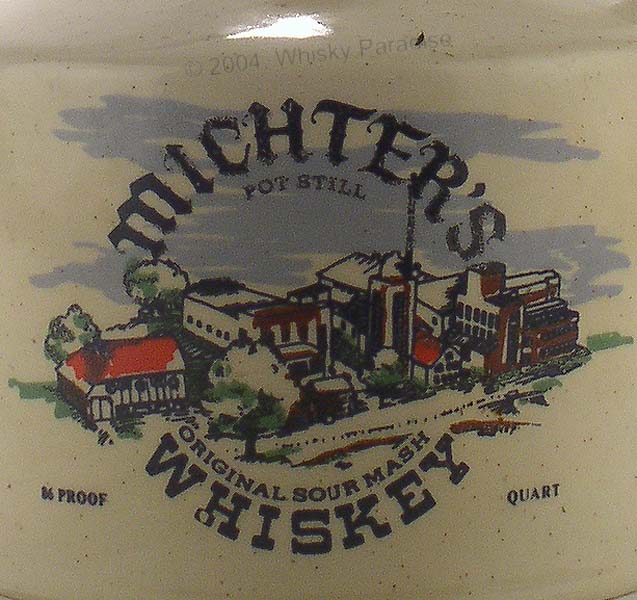 White cylindrical ceramic handled decanter - Rounded brand and distillery stencilled