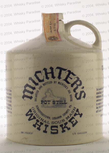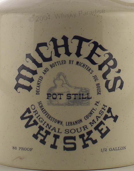 White cylindrical ceramic handled decanter - Rounded brand and pot still stencilled
