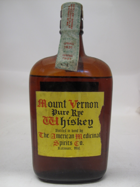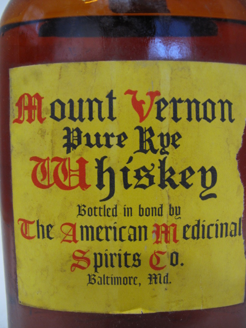 Clear glass - square bottle long necked - Yellow label printed in black, red & white - Age in shoulder label