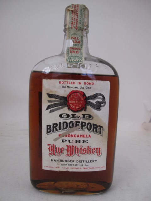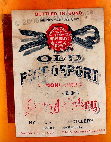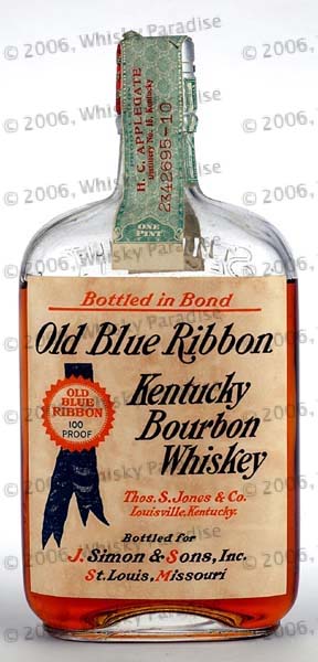 Clear glass - Square bottle with rounded corners - White label printed in blue & red - American flag cap - For Austrian export