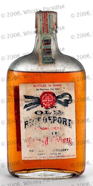 Clear glass - square bottle - Distillery drawing in black label - Age in shoulder label - Black cap