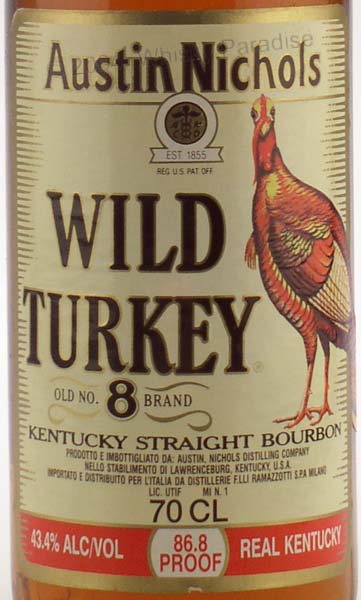 Old n° 8 Brand - Clear glass - Tall bottle - Picture in cream label printed in black & gold - Gold cap - Rammazzotti import (Italy)