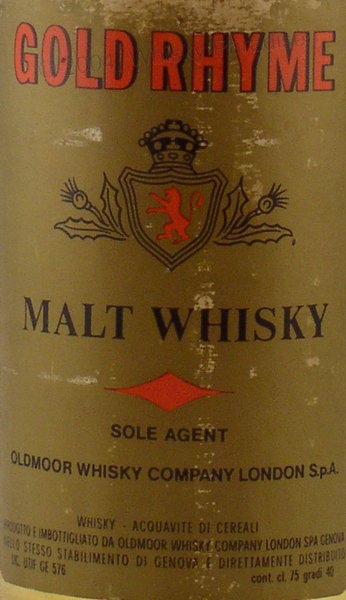 Oldmoor import - Clear glass - Gold label printed in red & black - gold screw cap