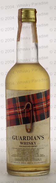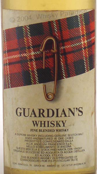 Clear glass - Tall bottle - Tartan draw in cream label printed in black - Gold screw cap
