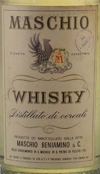 Clear glass - Tall bottle long necked - Emblem in cream label - Gold cap