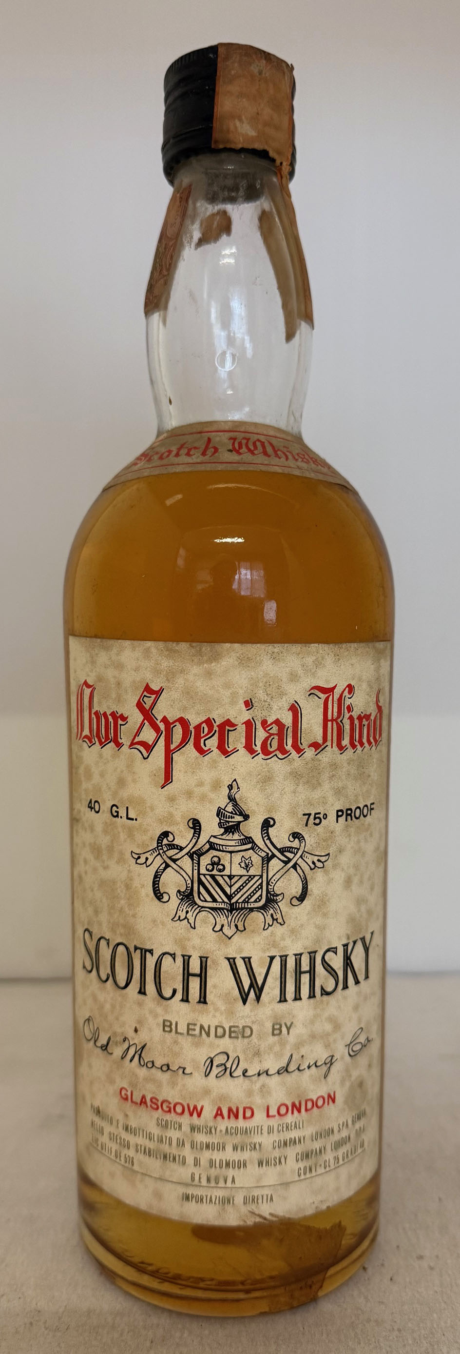 "Special Kind" - Clear glass - tall bottle - White label - Dark screw cap - Export Italy