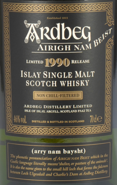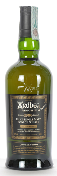 "Airigh Nam Beist" - Limited 1990 release - Green glass - Black label printed in gold & white - Cork drive with black capsule