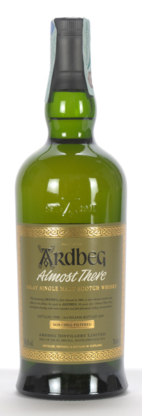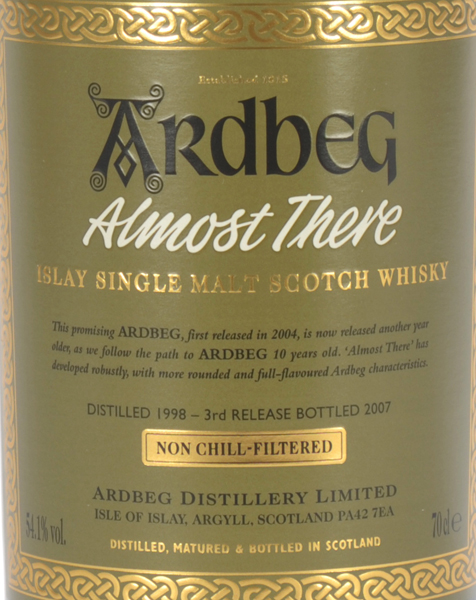 "Almost There" - 3th release - Green glass - tall bottle - black, gold & white print in green label gold framed - Cork drive with black capsule