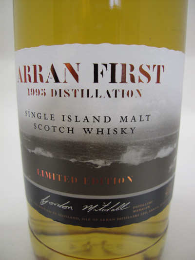 Arran First 1995 Distillation - Limited edition - Seaside photo - Gold capsule - Hang tag - Signature of Master Distiller printed in the bottom