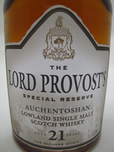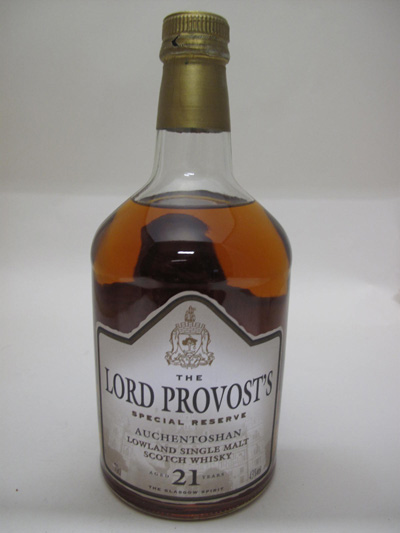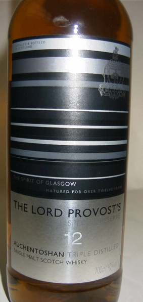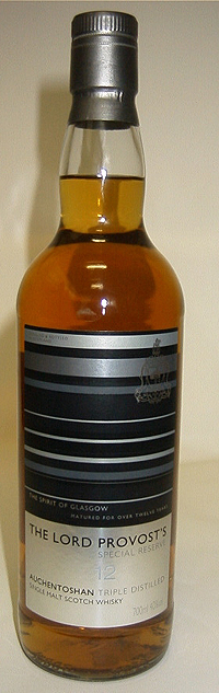 The Lord Provost's Special Reserve - Triple distilled - Clear glass - Tall bottle - Striped colored label - Age in white - Cork drive with silver capsule