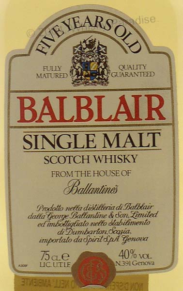 Clear glass - baltimore bottle -Black & red print in white label - gold capsule - Spirit import (Italy)