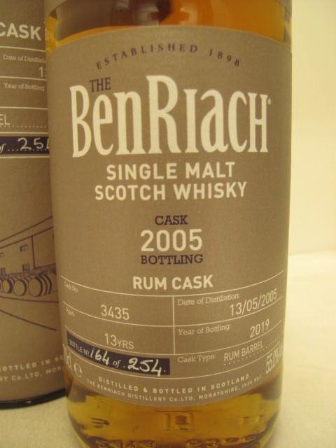 Single cask malt - Rum cask - Clear glass - Light brown label - Cork drive - Black capsule