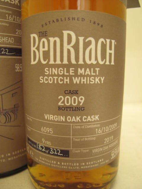 single cask malt - Virgin oak cask - Clear glass - Light brown label - Cork drive - Black capsule - Hang tag