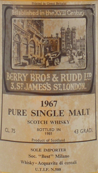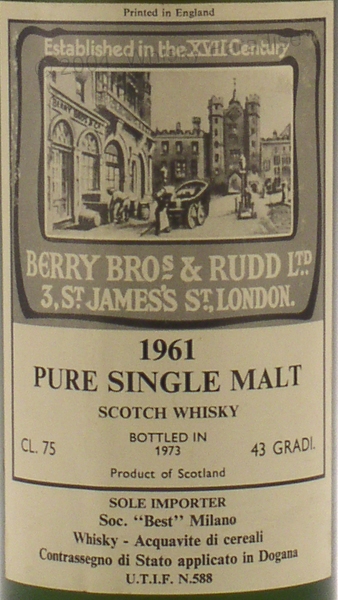 Best import - Green glass - White & grey label printed in black - Pure single malt - Gold screw cap