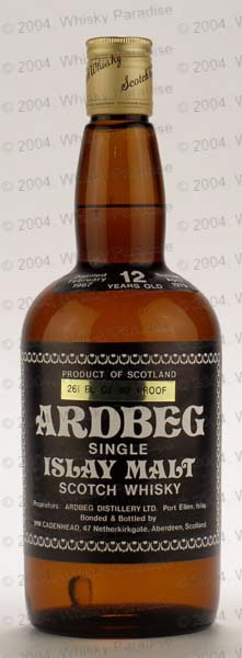 Dark glass - Dumpy bottle - Black label white framed printed in white - Age in shoulder label - Gold screw cap