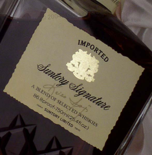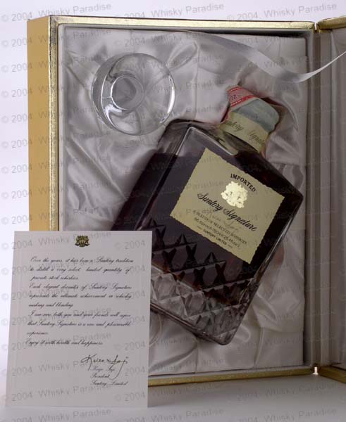 "Suntory Signature" - Box set - Clear glass - Rectangular flat decanter short necked - Brown label printed in black - Gold emblem