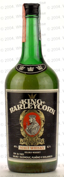 Czech whisky - Green glass - Dumpy bottle - Black label in white frame, printed in white & red - Black screw cap
