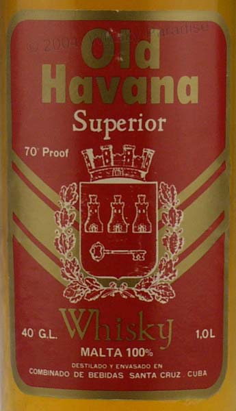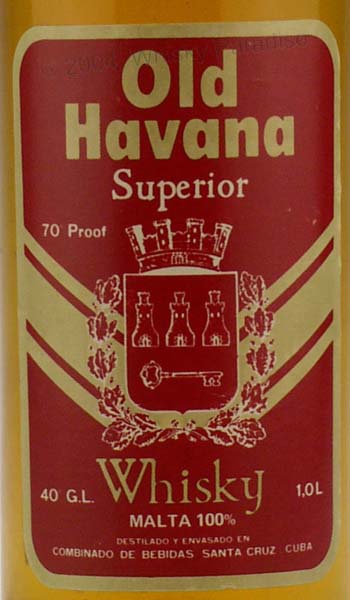 Cuban Whisky - Malt 100% - Clear glass - Tall bottle - Red & gold label - White cap