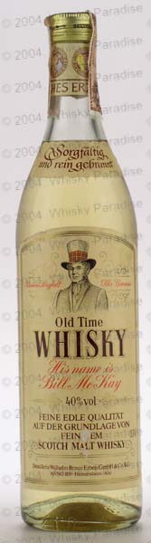 German whisky - Clear glass - Tall bottle - Picture in cream label printed in black & red - Gold screw cap