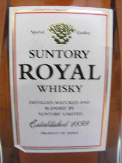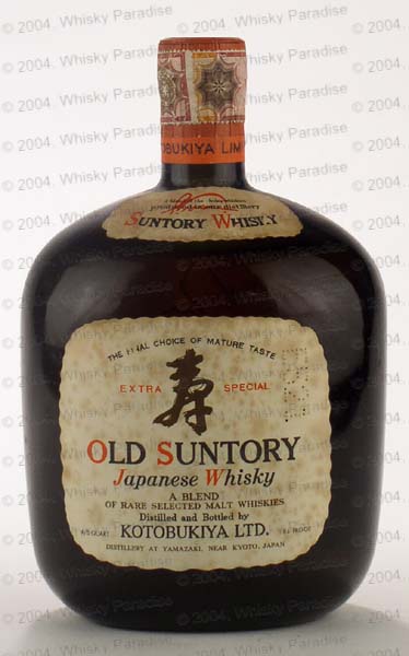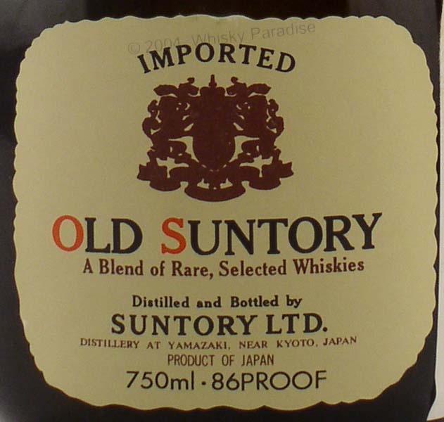 Old Suntory - Black glass - chestnut bottle - Cream label printed in red & black - Red cap