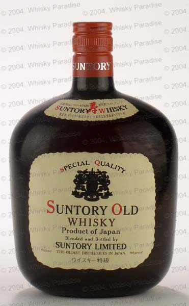 Suntory Old - Black glass - chestnut bottle - Cream label printed in red & black - Red screw cap