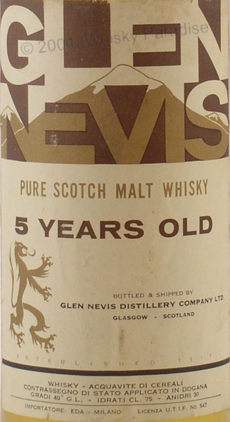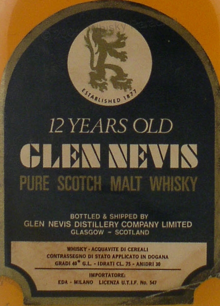 EDA import - Clear glass - White & brown label printed in brown & white - Age printed also on shoulder label - Gold screw cap