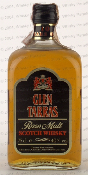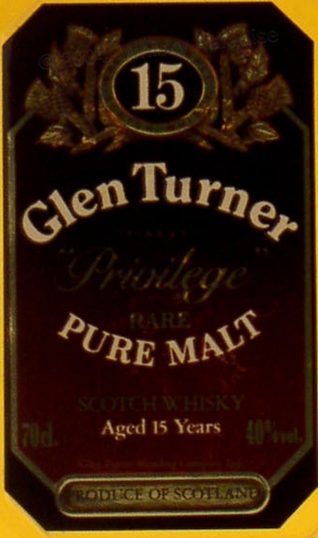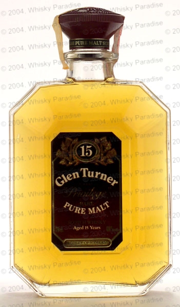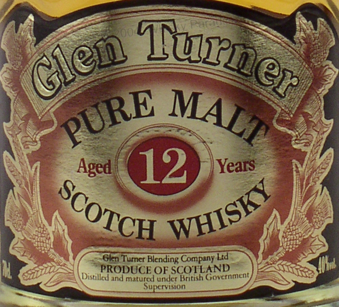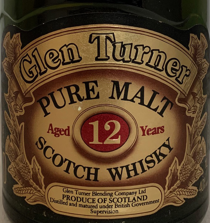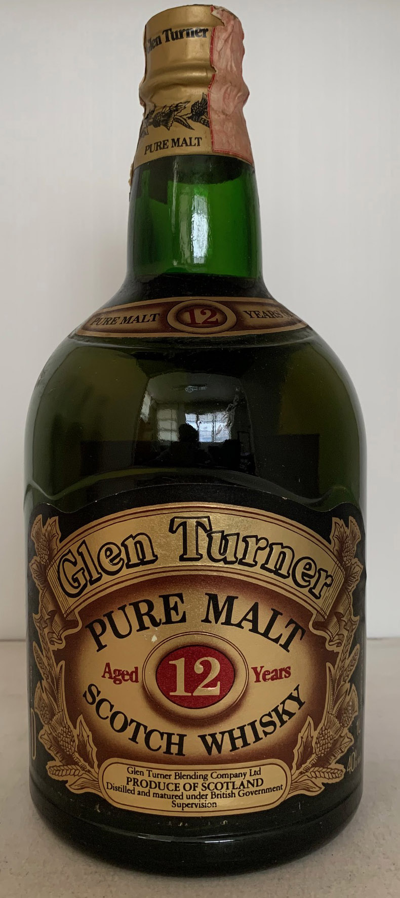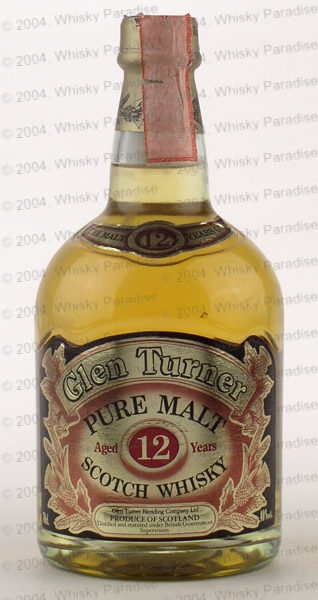 Dumpy bottle - Clear glass - Brown & gold label printed in black & red - Age printed also on shoulder label - Gold capsule