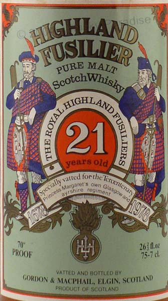Highland Fusiliers 1678 - 1978 - Tall bottle - emblem in dark brown label - gold cap - Co import (Italy)