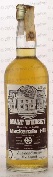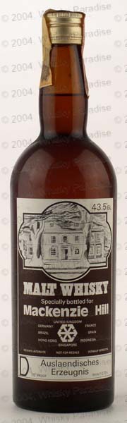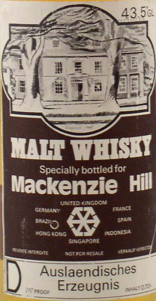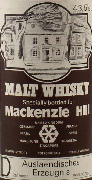 Specially bottled for MacKenzie Hill - Dark glass - tall bottle - White/Black label - Gold screw cap - For export in Germany