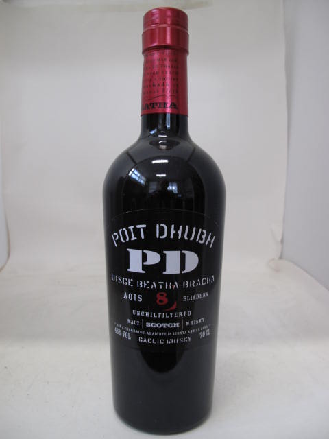 Dark glass - Tall bottle - Red and black label - Cork drive - Red capsule