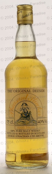 Clear glass - Light brown label printed in orange & black - Gold screw cap