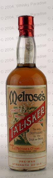 Melrose's Old Finest Vatted - clear glass - tall bottle - Picture label - red cap