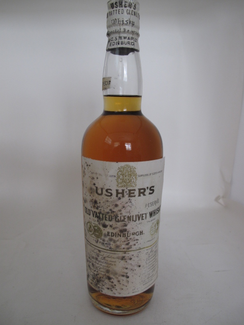 Old Vatted Glenlivet whisky - Clear glass - Tall bottle - White label - White cap