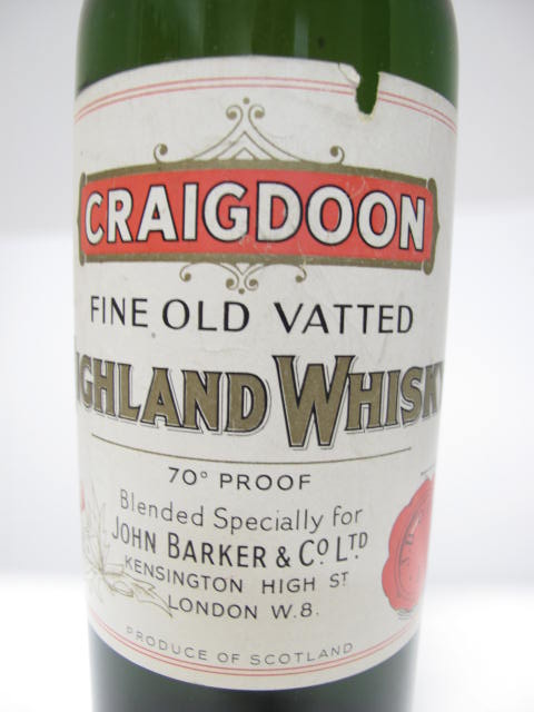Green glass - tall bottle - White label - Cork drive - Black capsule - Blended specially for John Barker