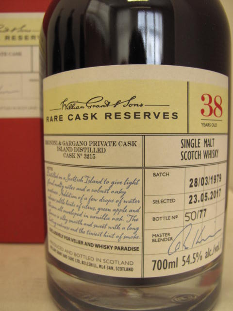 William Grant Rare Cask Reserves - BEGNONI & Gargano Private Cask (n° 3215) - Exclusively for Velier and Whisky Paradise - Limited bottling (77 btls) - Master blender signature