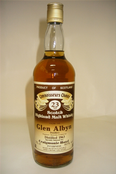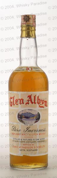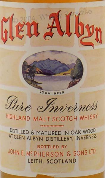 "Pure Inverness" - Clear glass - tall bottle - Loch Ness picture in oval - Cream label - Age in shoulder label - gold cap exclusive for giaccone