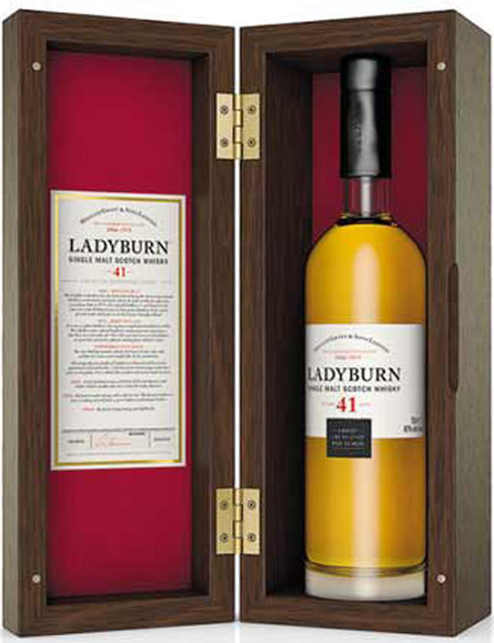 Wooden box - Clear glass - Tall bottle - Age in White label - Cork drive - Black capsule