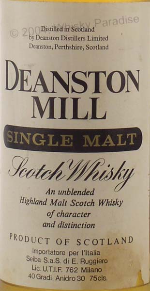 Seiba import - Clear glass - White label Printed in black & gold - Age printed on shoulder label - White screw cap