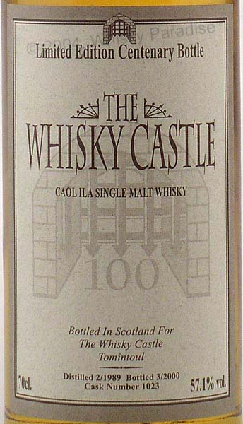 Limited edition centenary bottle of the Whisky Castle - Cask number 1023